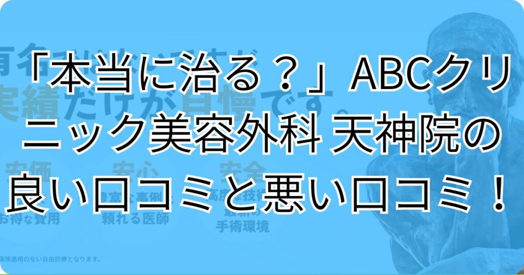 「本当に治る?」ABCクリニック美容外科 天神院の良い口コミと悪い口コミ!
