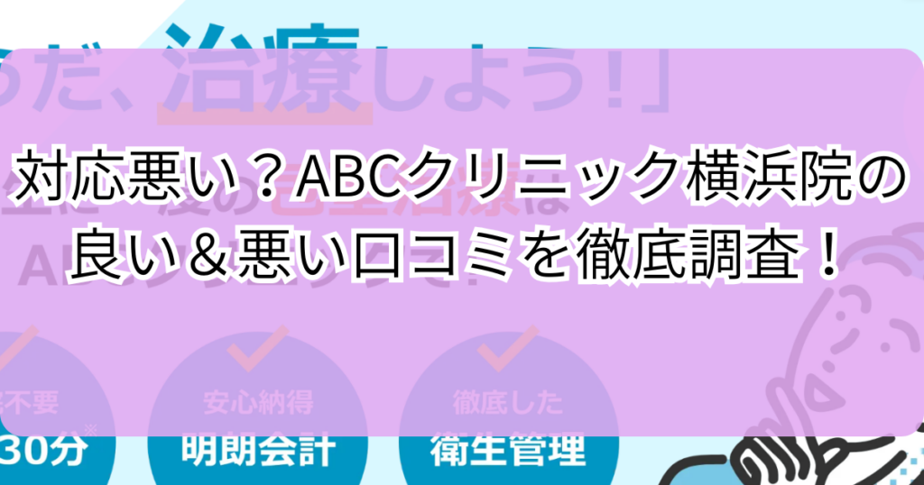 対応悪い?ABCクリニック横浜院の良い&悪い口コミを徹底調査!