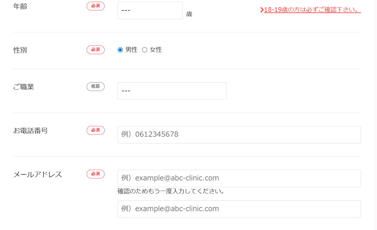 上記は説明画像になるので記入は公式サイトの予約フォームからお願いします。