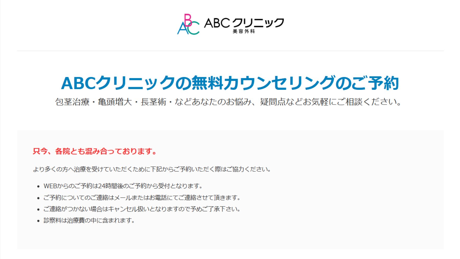 カウンセリングは予約制になりますので事前に公式サイトの予約フォームから予約お願いします。